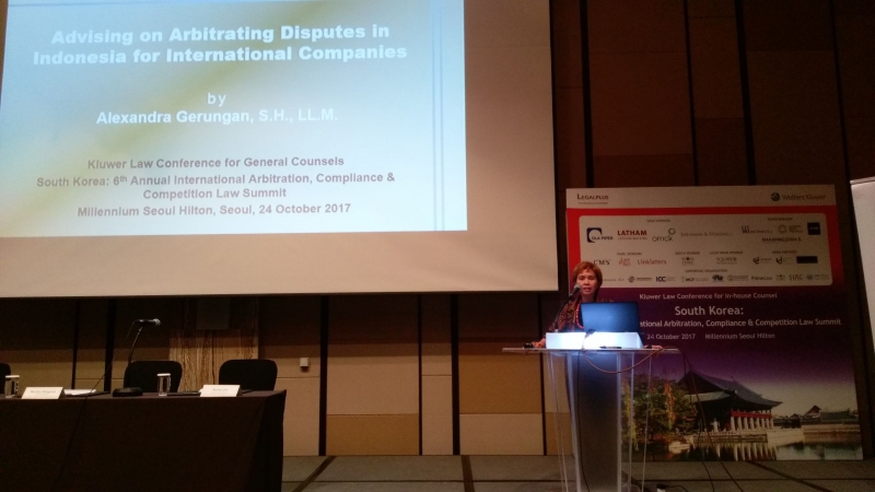 Our Partner, Alexandra Gerungan was one of the speakers at the South Korea: 6th Annual International Arbitration, Compliance & Competition Law Summit on 24 October 2017 in Seoul, hosted by Wolters Kluwer & Legal Plus. Practitioners and delegates from all over Asia were there to network, present and find out everything they need to know about Arbitration, ADR and Mediation from the experts in this field and the leading Kluwer Authors.