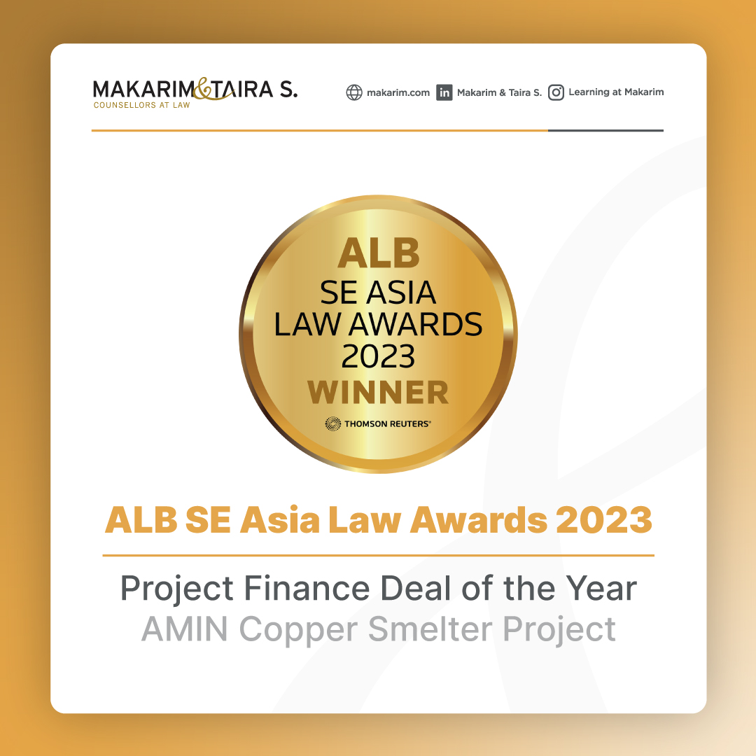 Our firm received the award for Project Finance Deal of the Year for the AMIN Copper Smelter Project.