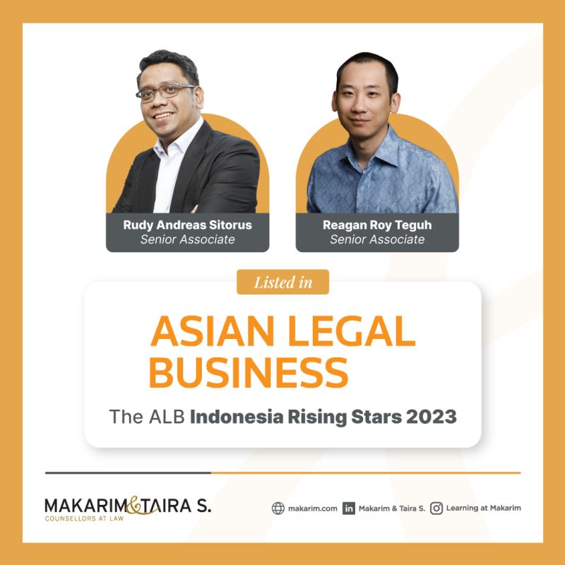 We are pleased to announce that two of our Senior Associates, Rudy Andreas Sitorus and Reagan Roy, have been named among the Indonesia Rising Stars 2023 by Asian Legal Business.