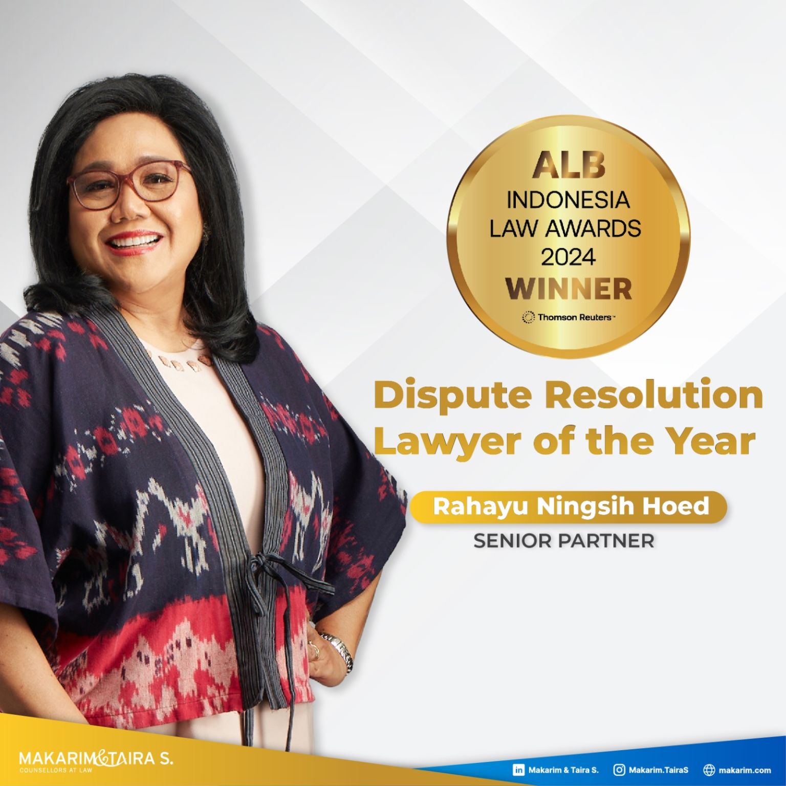 Makarim & Taira S., one of Indonesia’s premier law firms, proudly announces that our Senior Partner, Rahayu Ningsih Hoed has been named Dispute Resolution Lawyer of the Year at the prestigious Asian Legal Business (ALB) Indonesia Law Awards 2024. This recognition underscores Rahayu’s significant contributions to dispute resolution and her extensive impact across the Southeast Asian legal landscape.