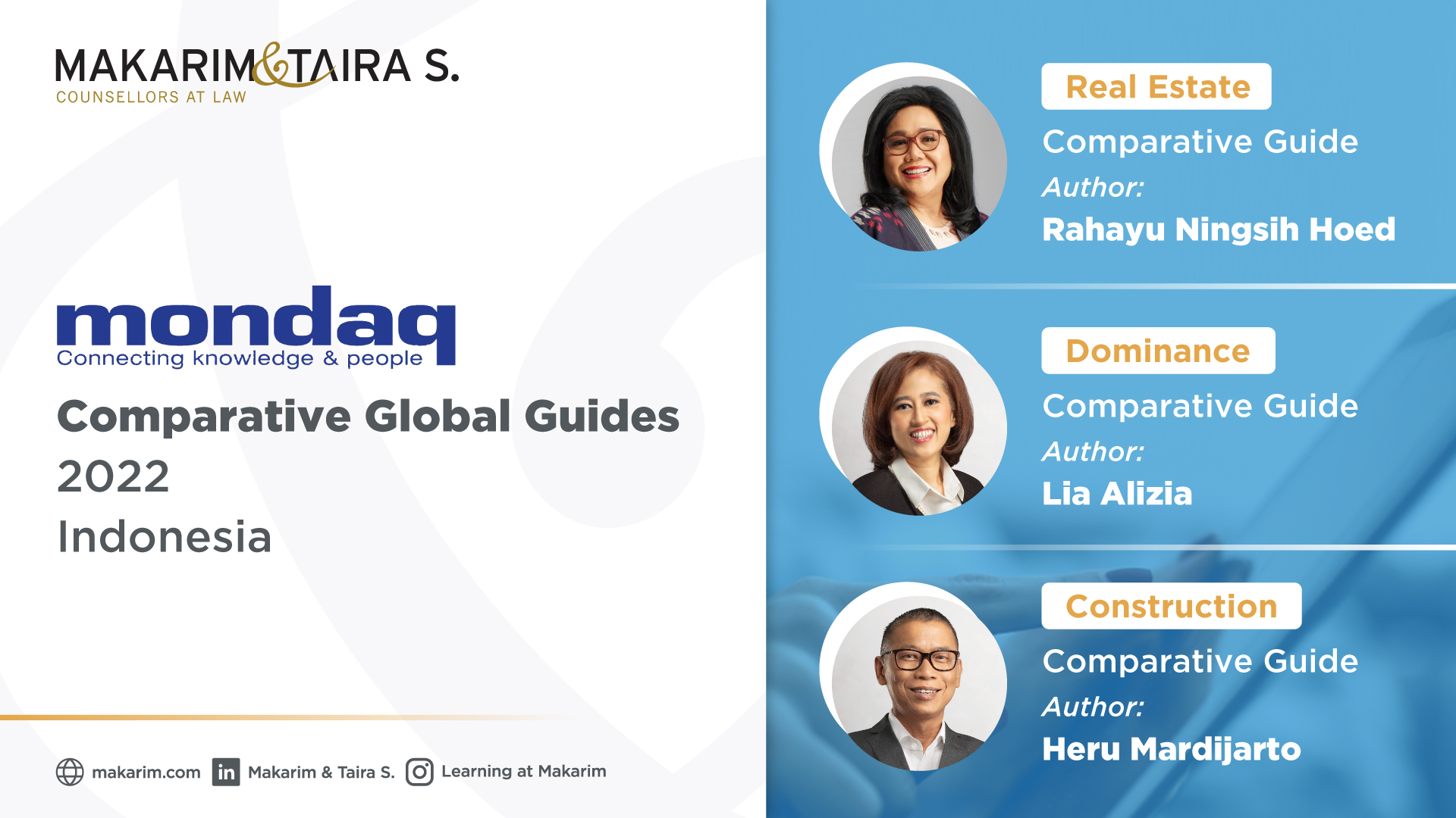 Mondaq recently published the 2022 Comparative Global Guide on Real Estate authored by our Partner, Rahayu Ningsih Hoed, Dominance authored by our Managing Partner, Lia Alizia, and Construction authored by our Partner, Heru Mardijarto.