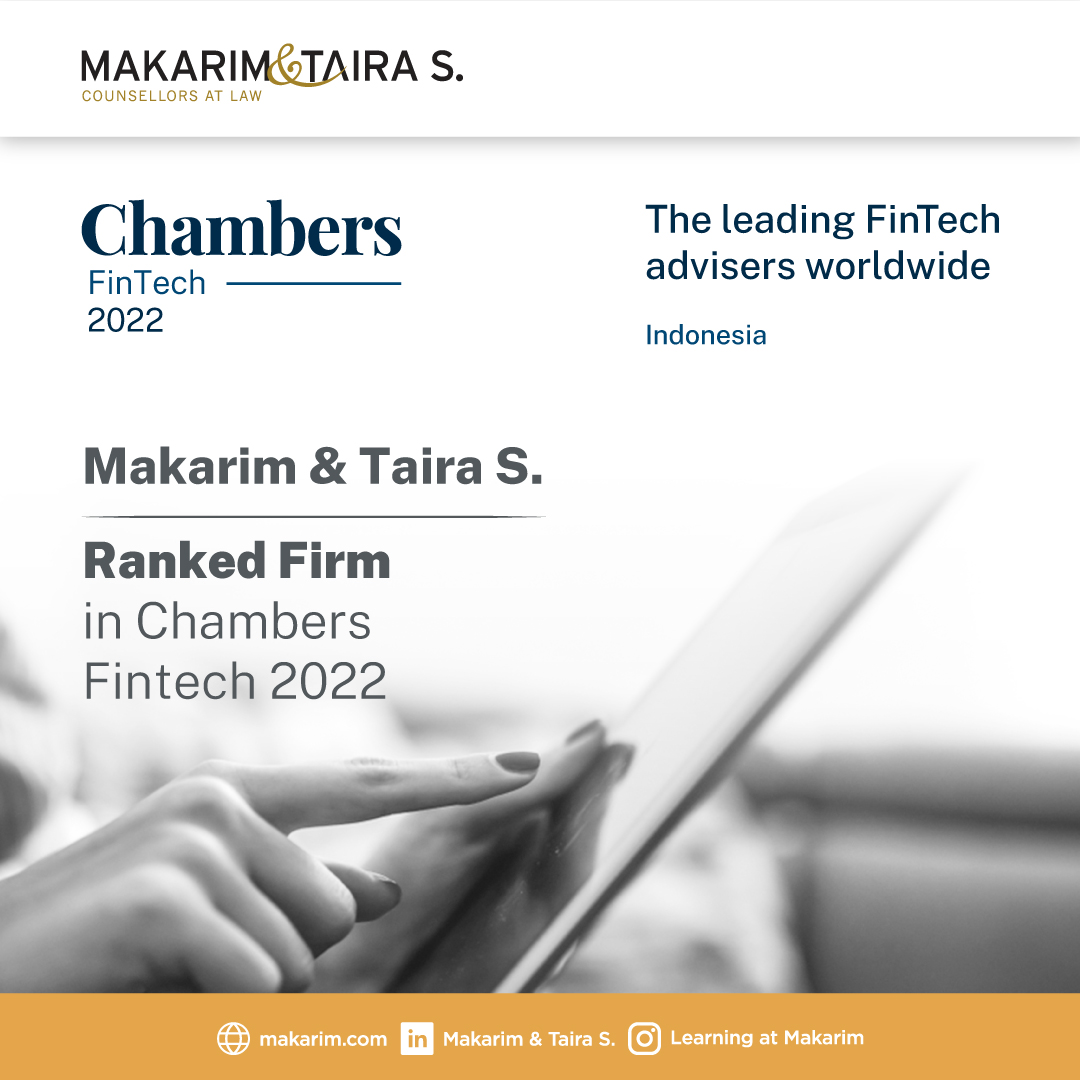 The 2022 Chambers FinTech Legal Research places Makarim & Taira S. in the short list of ranked firms in the Indonesian jurisdiction, among only seven other law firms. This acknowledgement indicates our commitment to stay on top of the rapid developments in the #fintech sector and our efforts to stay ahead of the curve in order to provide added value to our clients. It also demonstrates our clients’ trust and confidence and our teams’ continuous efforts to deliver only the highest possible quality of work. We look forward to a more meaningful and rewarding journey ahead.