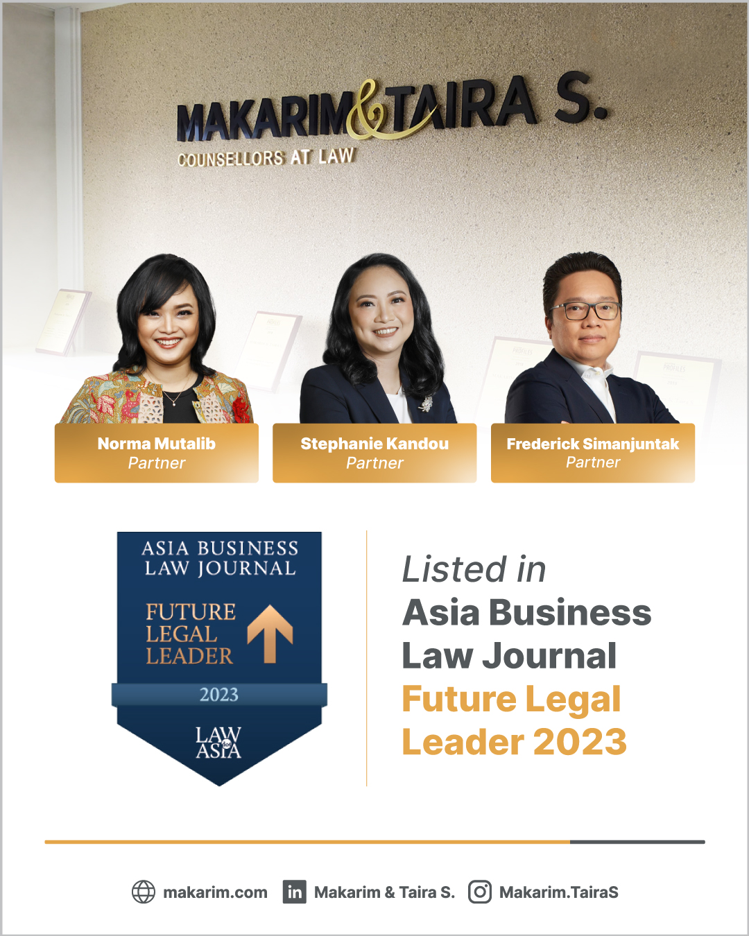 We're excited to share that our Partners, Norma Mutalib, Stephanie Kandou and Frederick Simandjuntak, have been named among the Top 50 Future Legal Leaders in Indonesia by the Asia Business Law Journal. A big congratulations to them on this well-deserved achievement! This prestigious award is a testament to their hard work and points to even greater achievements to come in their careers.