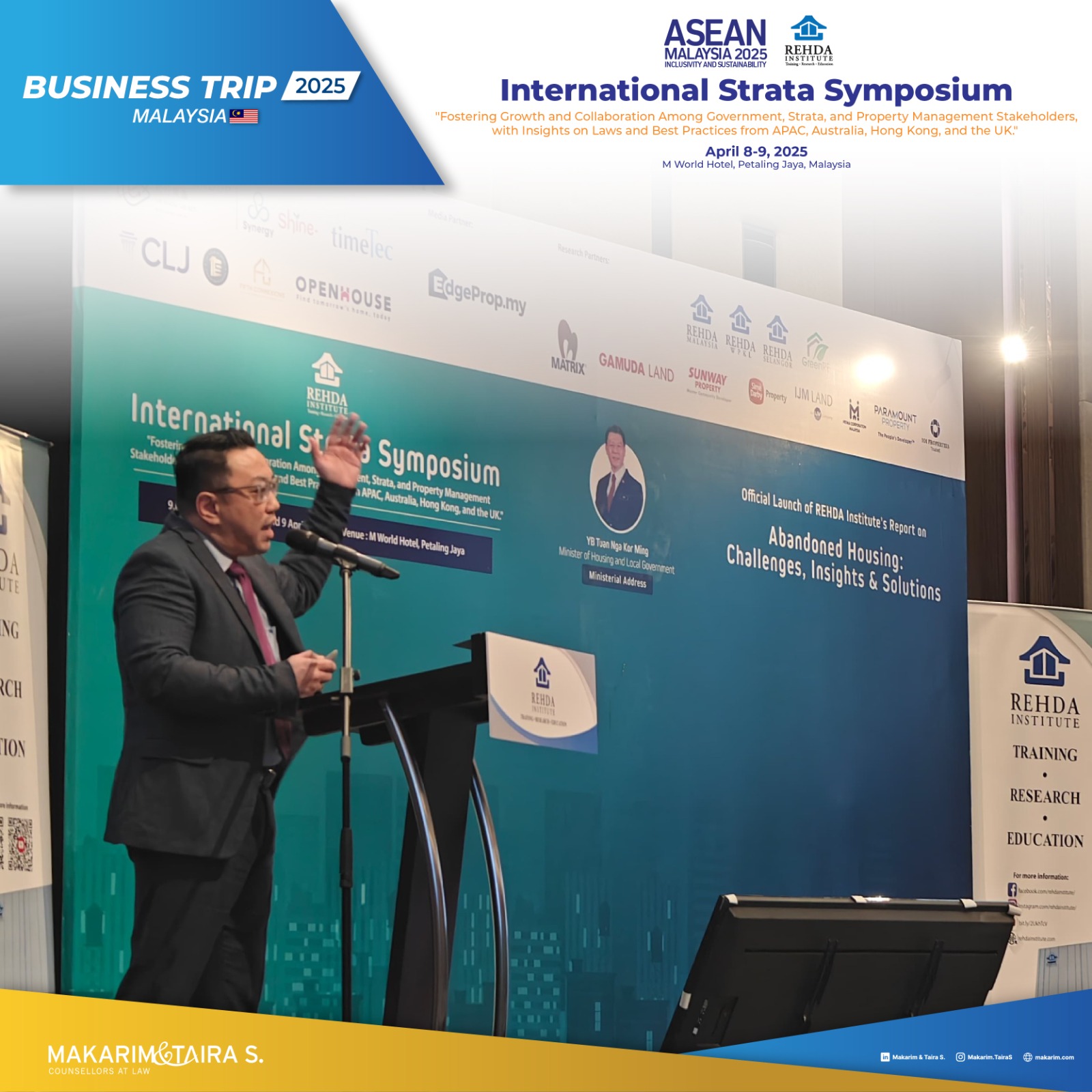 Makarim & Taira S. was honored to take part in the 2025 International Strata Symposium, organized by REHDA Institute and held in Petaling Jaya, Malaysia, on 8–9 April.